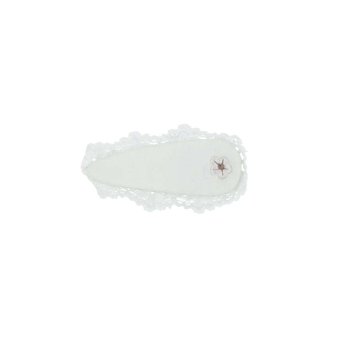 Delicate lace trim clips designed to add an elegant touch to your little one's wardrobe. This two-pack set features soft white lace detailing that complements any outfit. Perfect for securing hair accessories, decorating clothing, or adding a refined accent to everyday wear. Gentle on delicate fabrics and ideal for special occasions or daily styling.