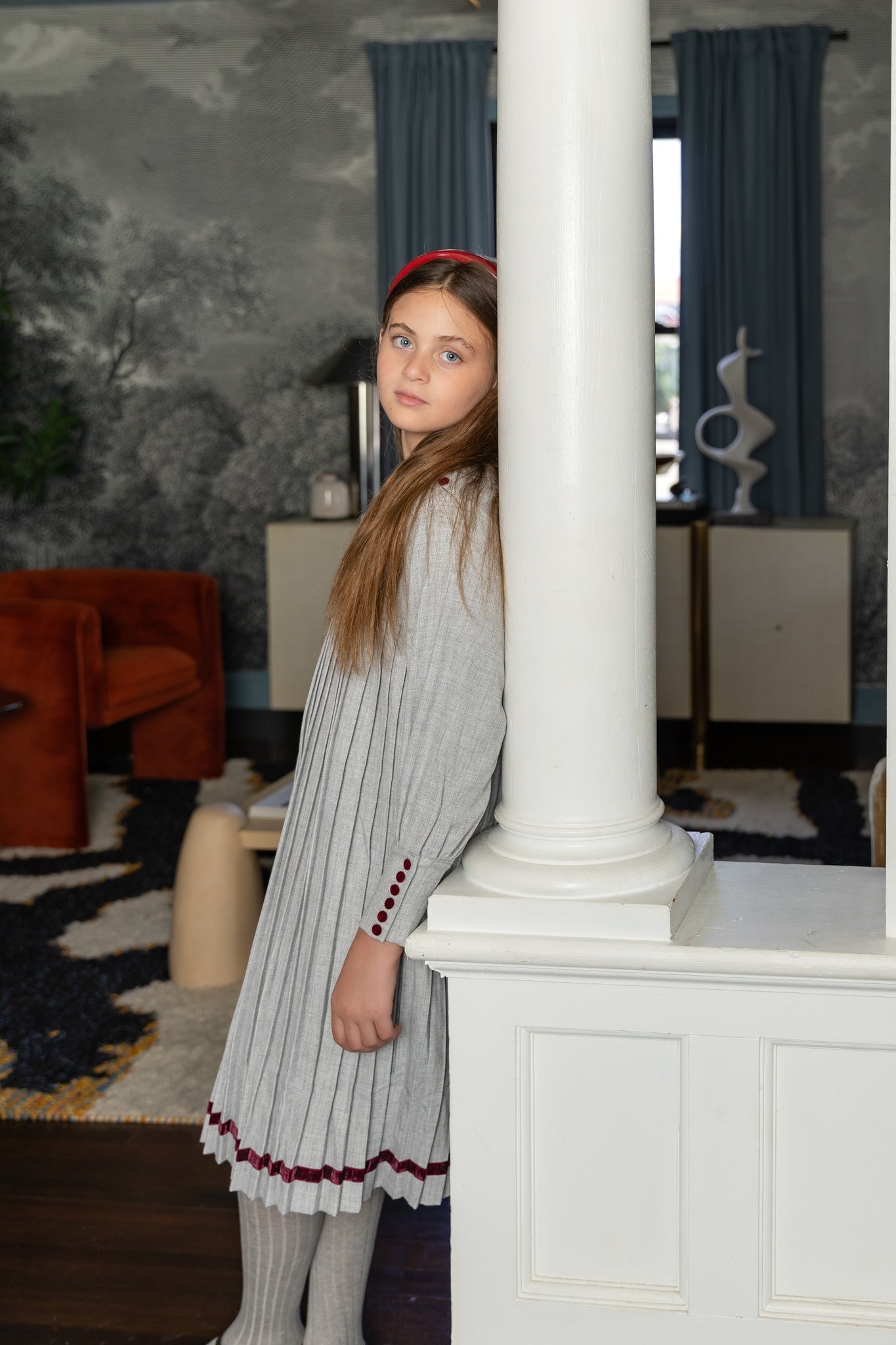 The Nou Nelle Pleated Button Dress in Light Grey combines timeless elegance with expert tailoring. Crafted with precision, its pleated design enhances movement while the button details add refined sophistication. This dress offers a versatile, polished look suitable for professional settings. Its dark grey hue ensures easy pairing with various accessories, making it a smart addition to any wardrobe.