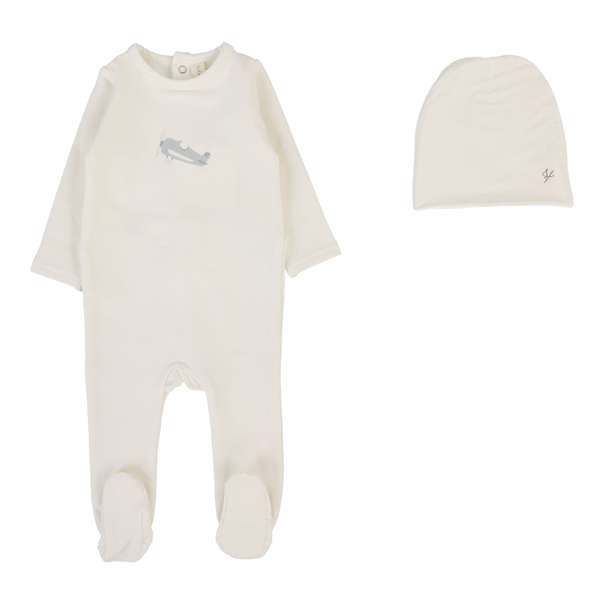 Lilette Graphic Footie And Hat - Cream/Airplane