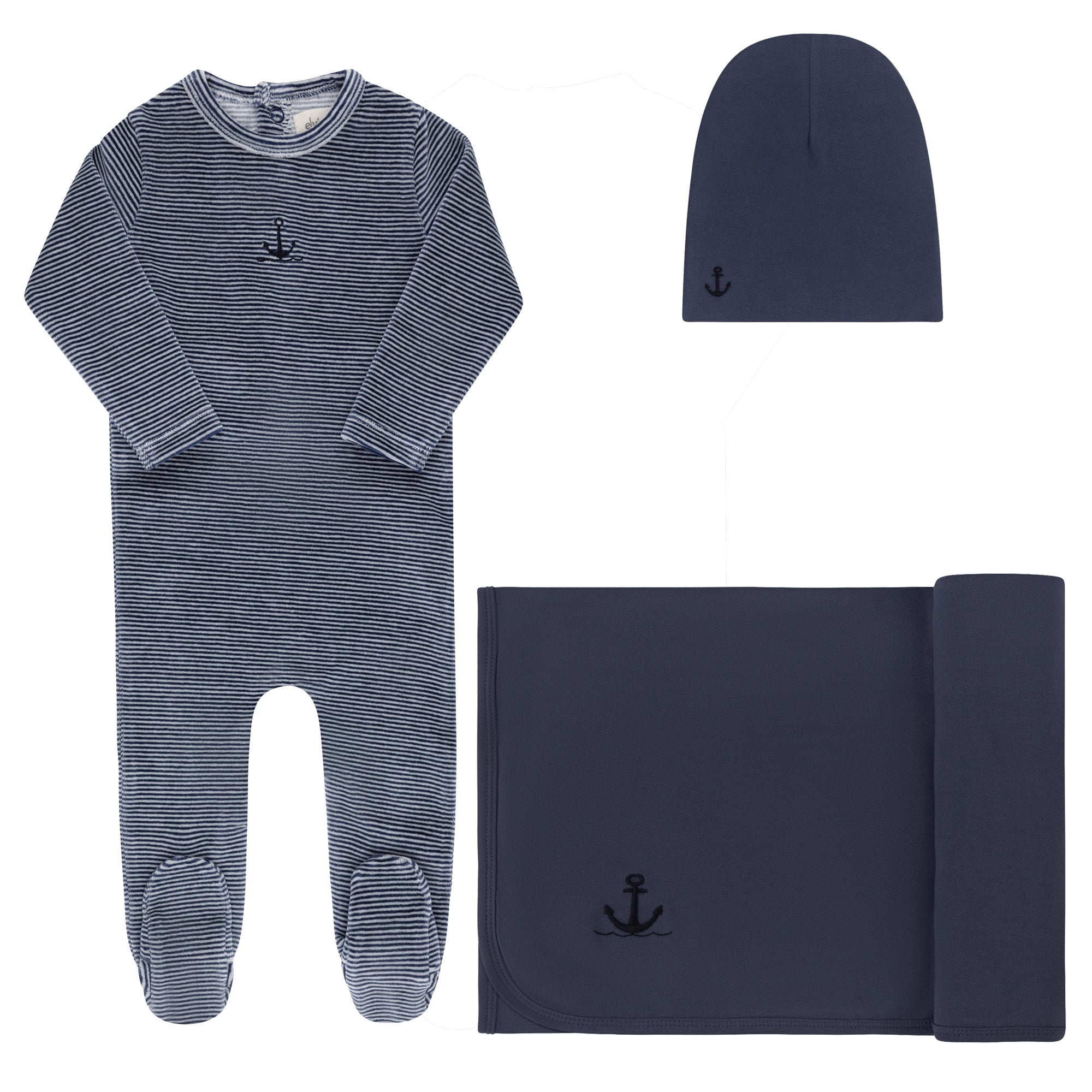 Ely's & Co Velour Stripe Collection Take Me Home Set - Dark Blue