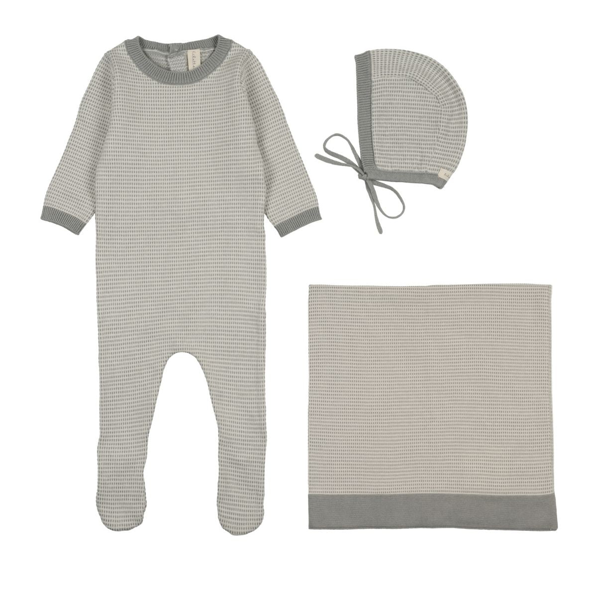 Lilette Two Tone Knit Layette Set - Light Blue