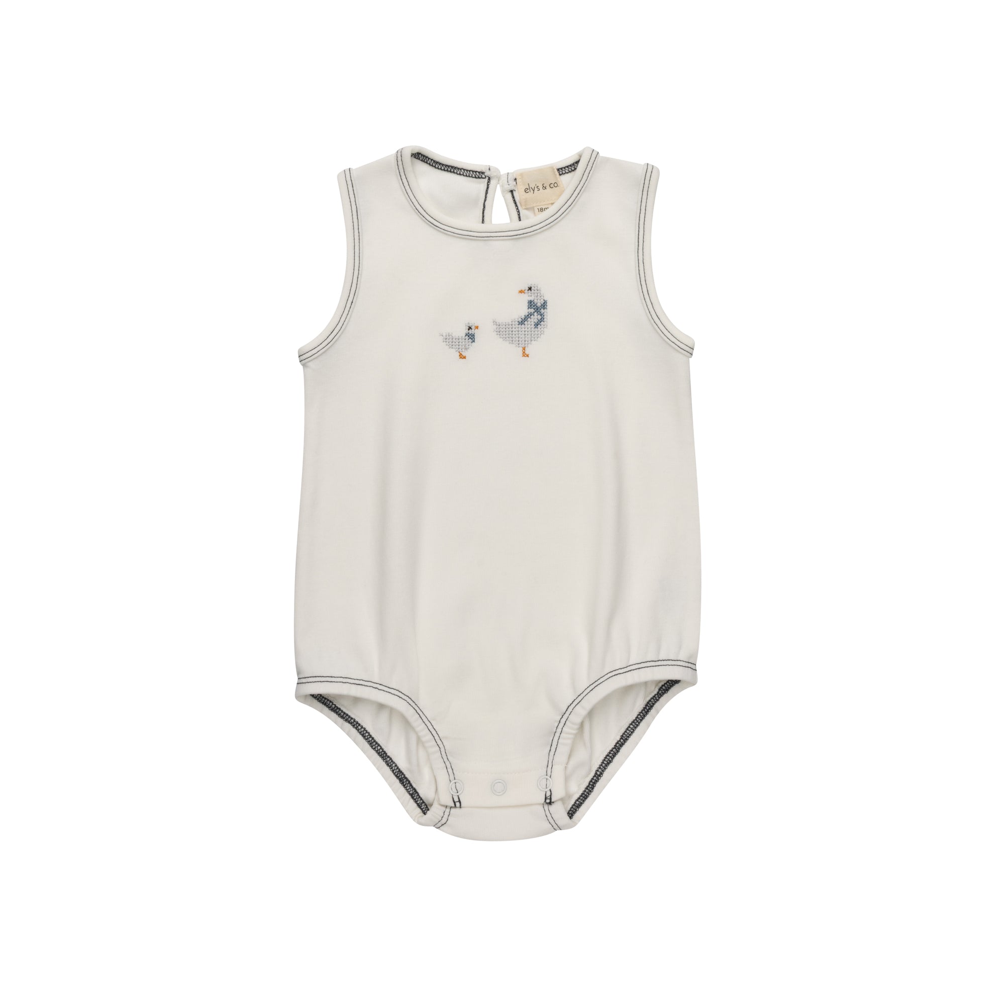 Ely's & Co Cotton Cross Stitch Duckling Collection Romper - Ivory/Blue