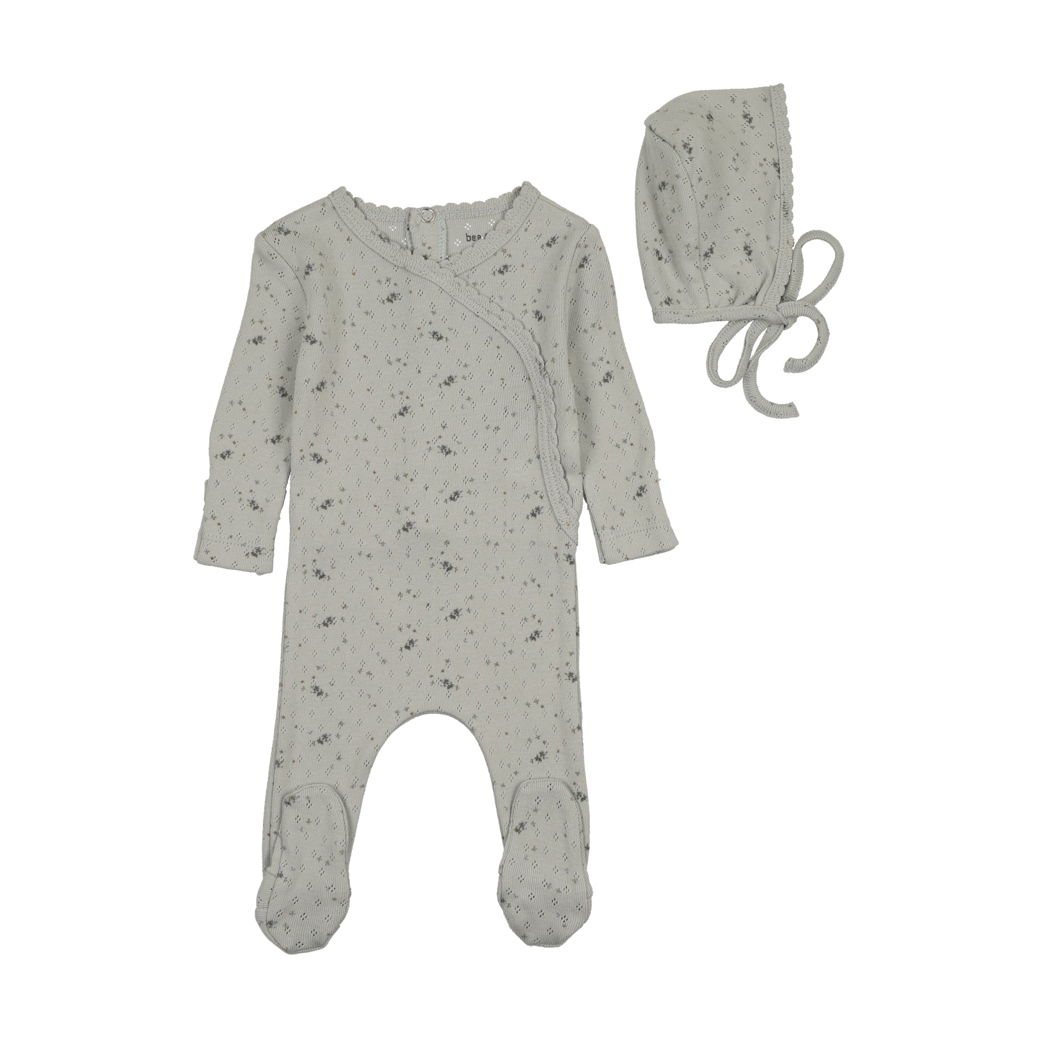 Bee & Dee Pointelle Pretty Petals Footie And Bonnet - Mist