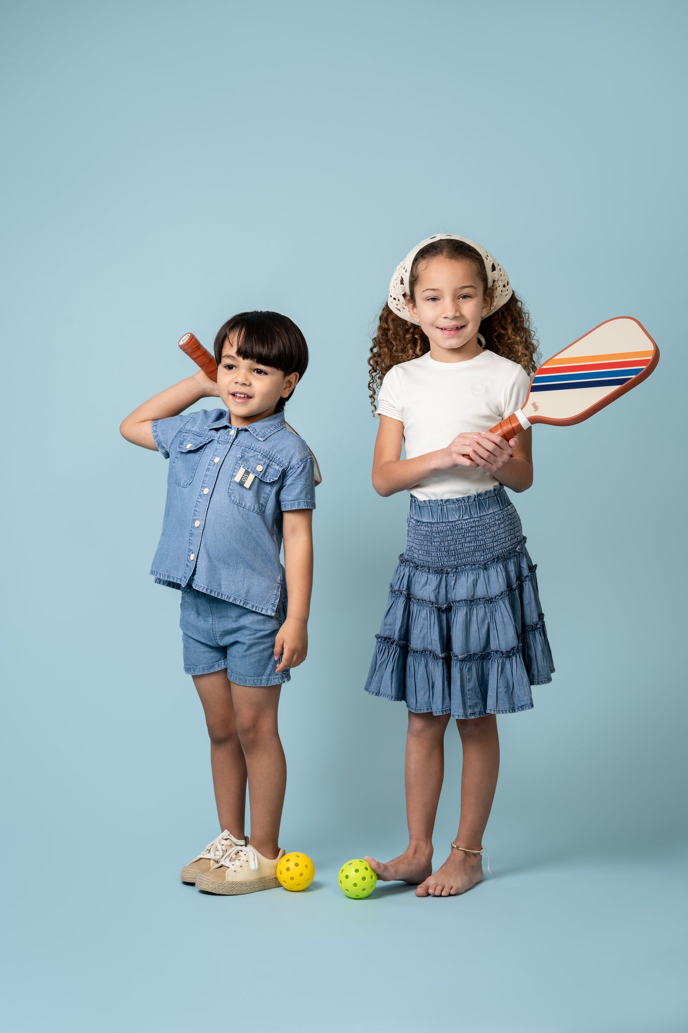 Crafted from premium stonewash denim, these boys shorts deliver timeless style with a contemporary edge. The faded finish adds character and depth, while the durable fabric withstands active play and repeated wear. Designed with a comfortable fit that transitions seamlessly from casual outings to weekend adventures, these shorts pair effortlessly with any wardrobe staple. The classic silhouette ensures lasting appeal across seasons, making them a reliable choice for the modern young wardrobe.