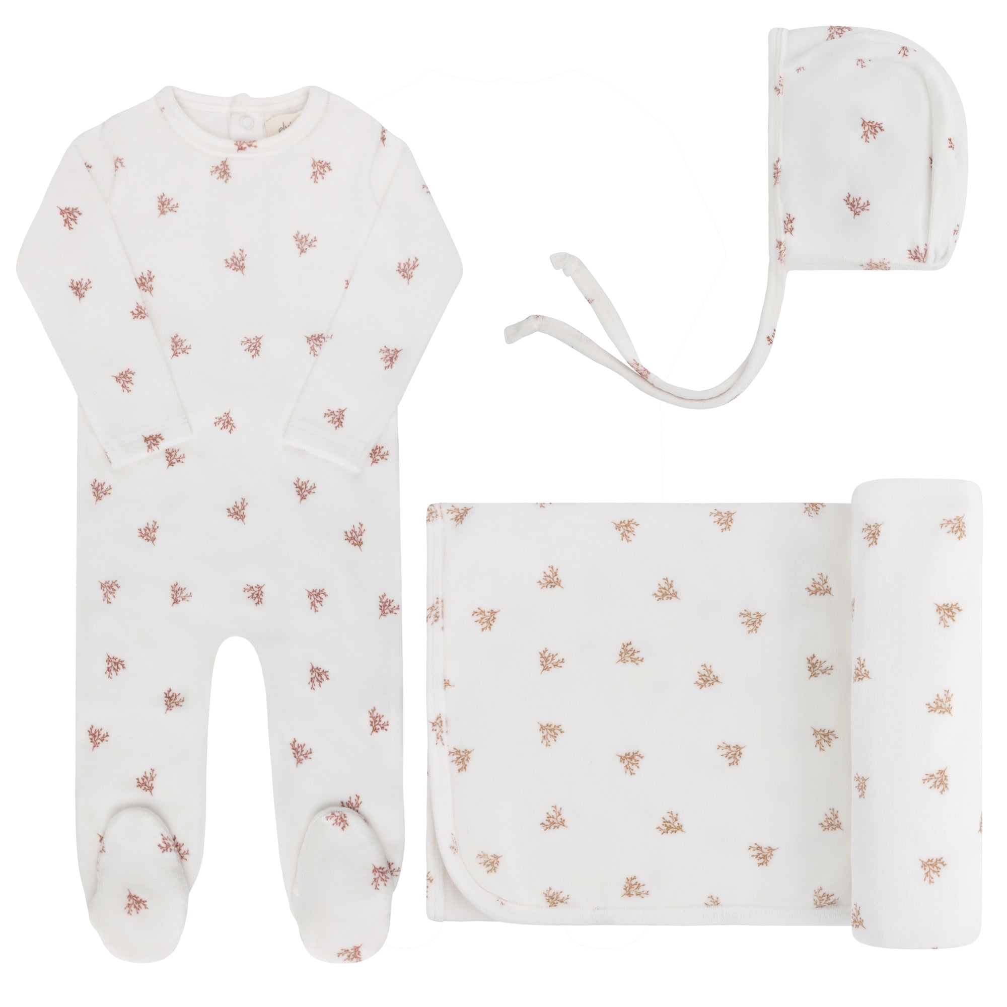 Ely's & Co Velour Leaf Pattern Collection Take Me Home Set - Ivory Girls