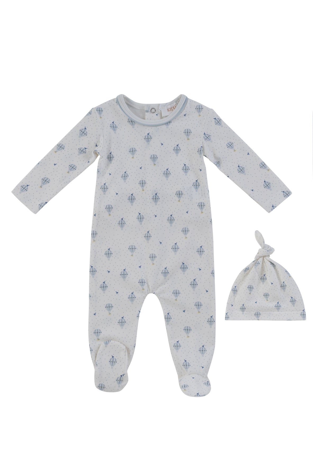 Introducing the Kipp Baby Up & Away Footie and Hat in Blue—a thoughtfully designed set that combines comfort with practicality for newborns and infants. The footie features secure closures and soft, breathable fabric that supports healthy temperature regulation throughout the day and night. The coordinating hat provides gentle head coverage while allowing proper air circulation. Both pieces are crafted from premium materials that withstand frequent washing while maintaining their shape and softness. This coordinated set simplifies dressing routines and makes an elegant addition to any nursery wardrobe.