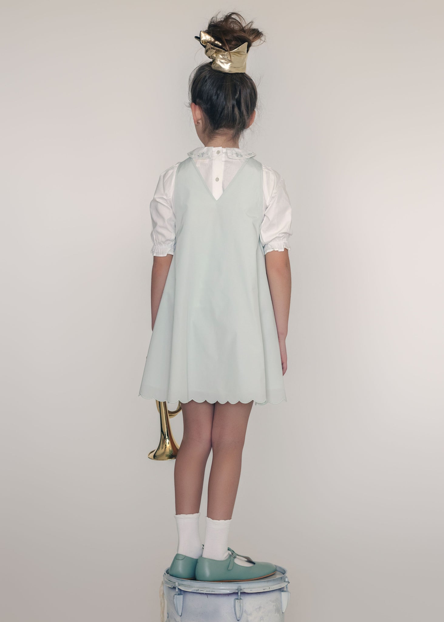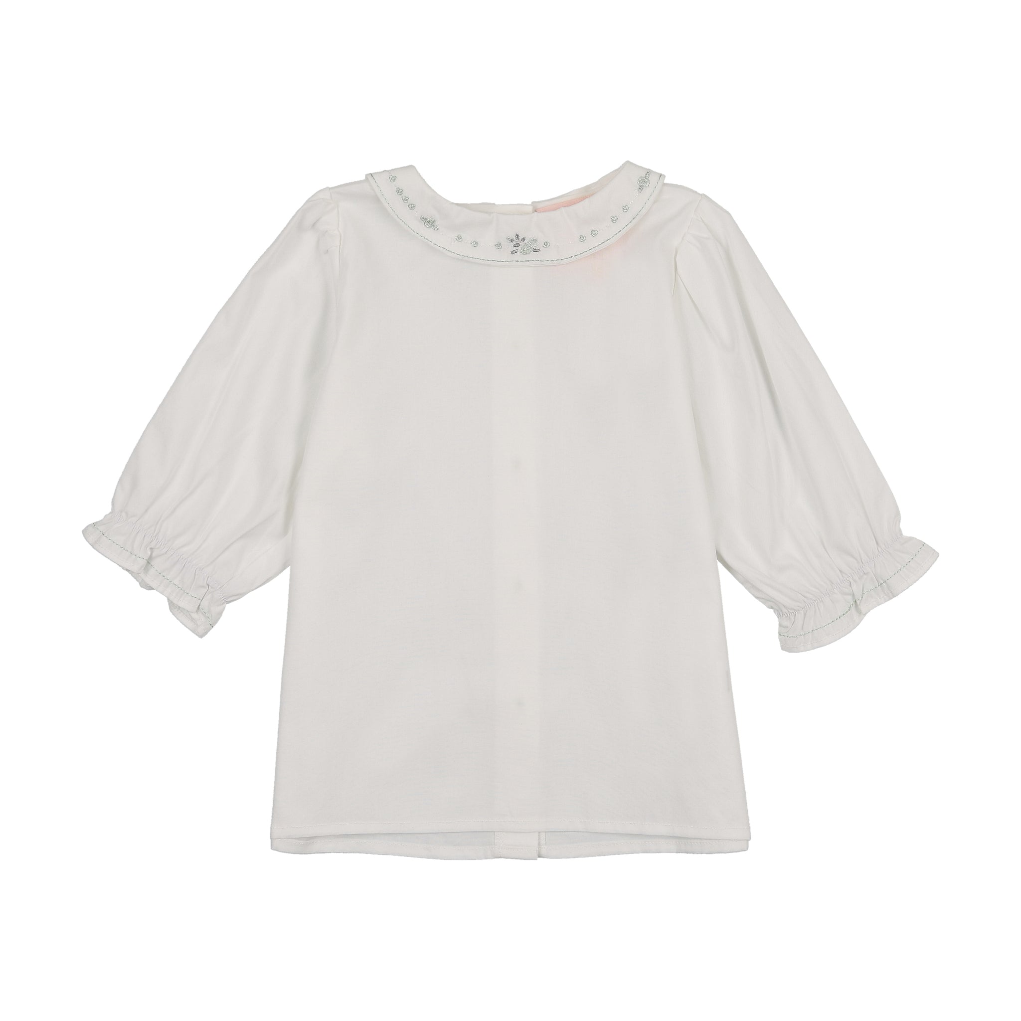Little Tempest Scallop Hem Jumper And Embroidered Blouse Set - Mint Green/White