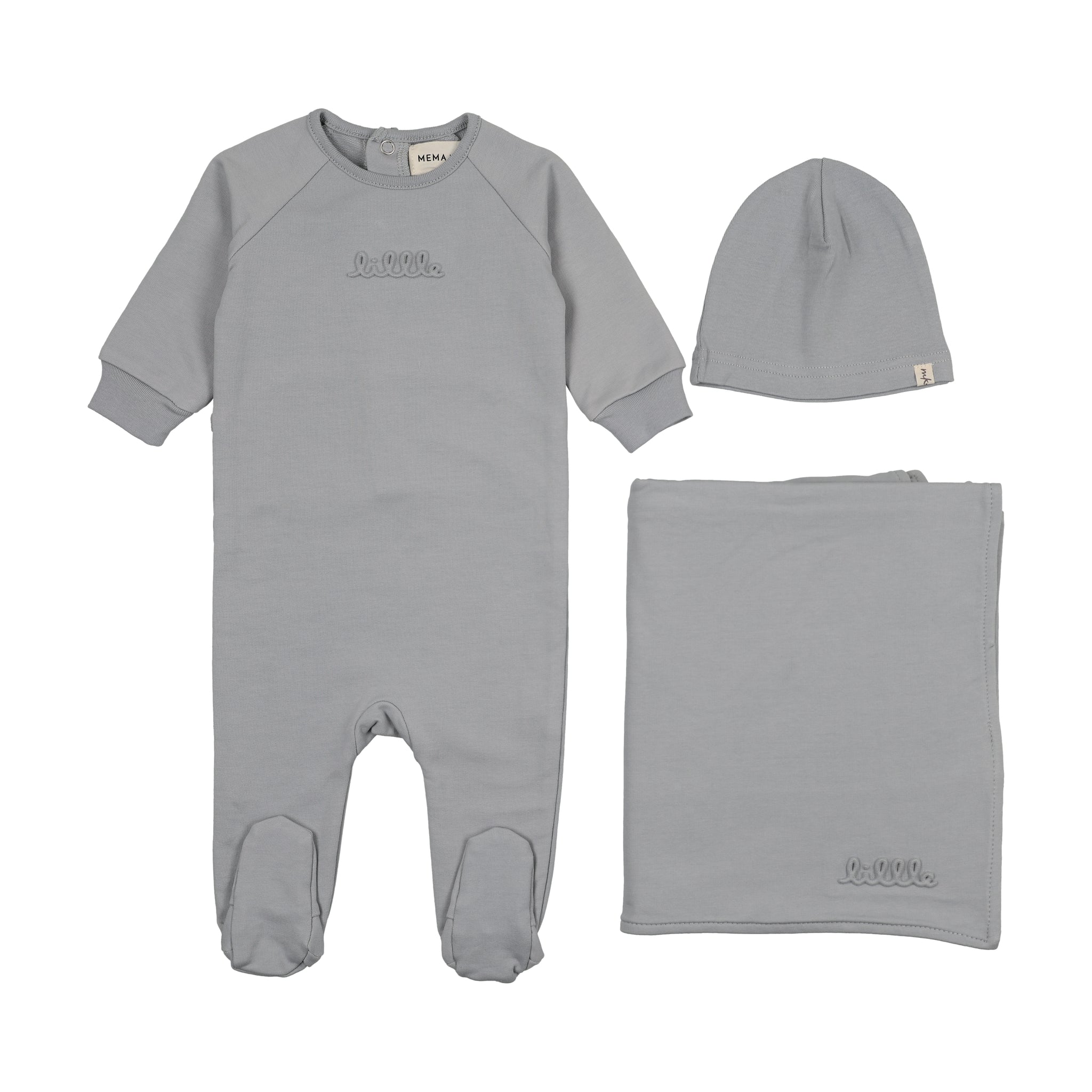 Mema Knits Embossed sweatshirt 3PC set - Windy Blue