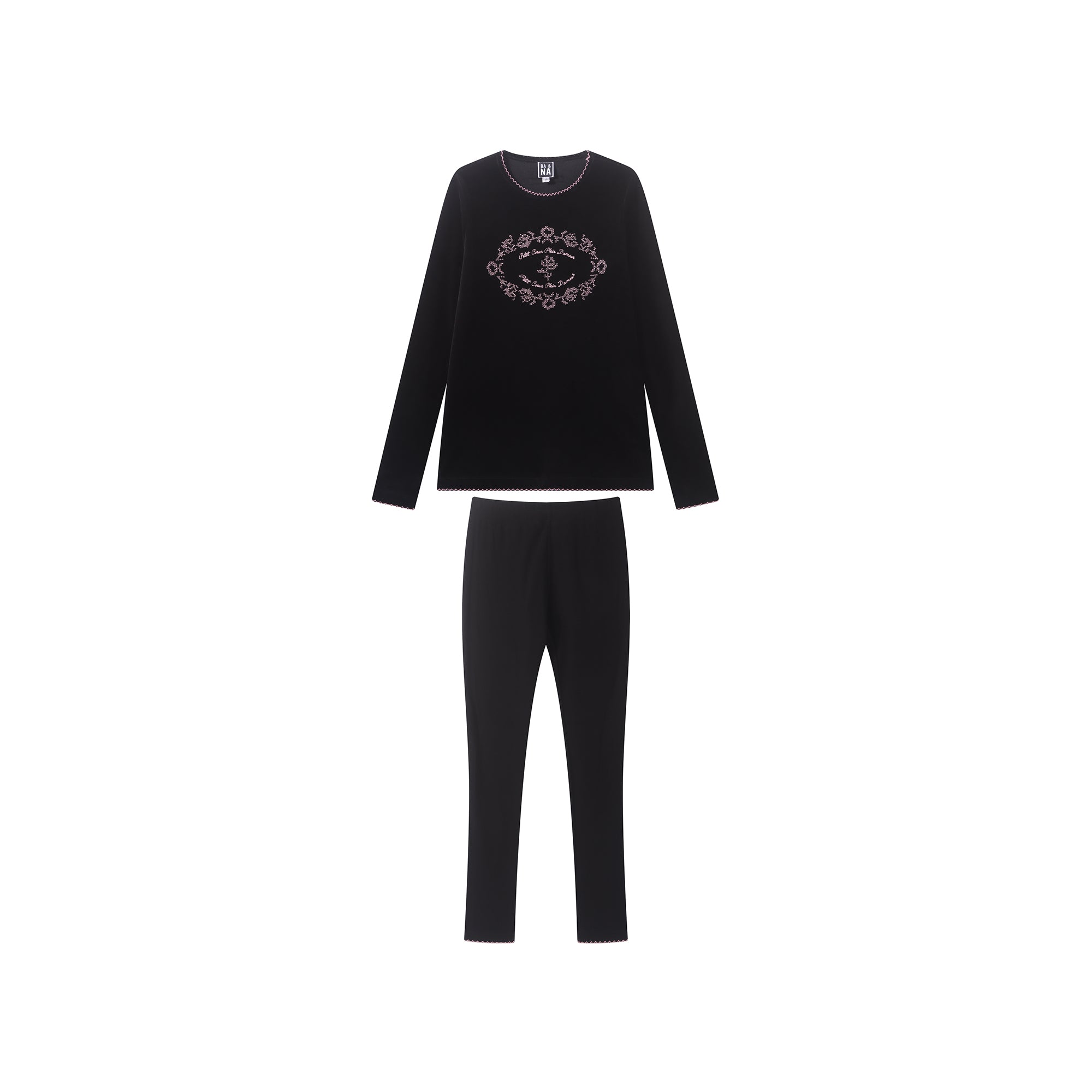Ba & Na Embroidered Lounge Set - Black/Mauve Pink