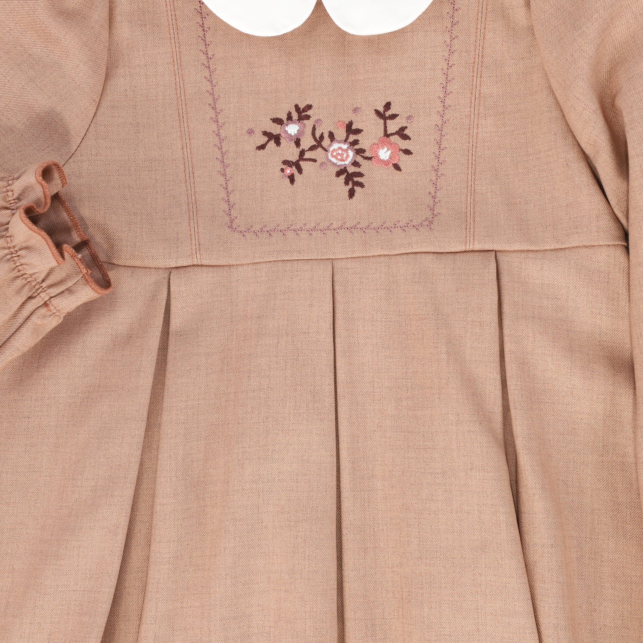 This Bamboo Wool Embroidered Dress in Pink combines natural fibers for exceptional comfort and durability. The blend of bamboo and wool offers breathability and warmth, making it ideal for cooler seasons. Expertly embroidered details add a refined touch, enhancing its sophisticated look. Perfect for those seeking a stylish yet practical garment crafted from sustainable materials.