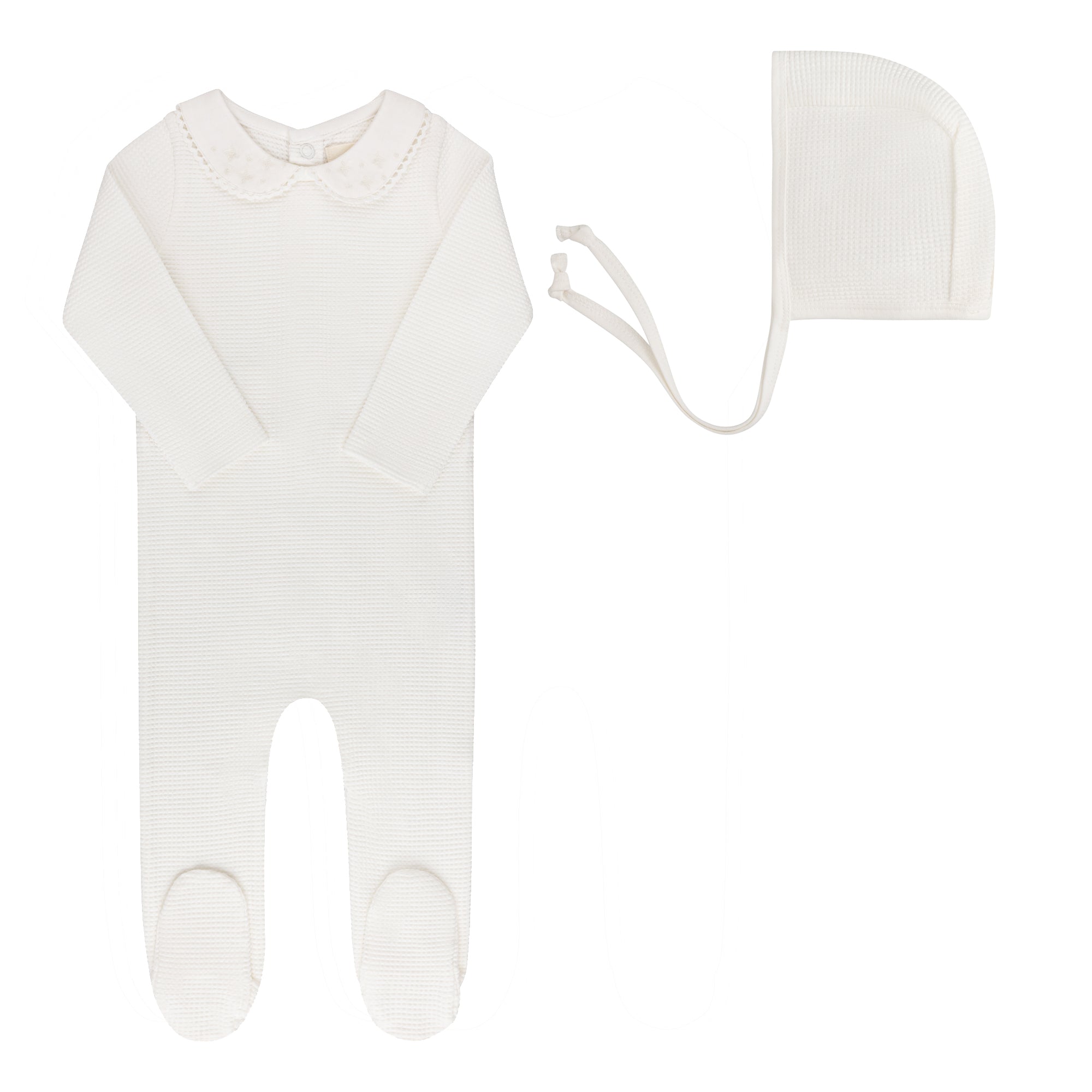 Ely's & Co Embroidered Collar Collection Footie And Bonnet - Ivory Boys