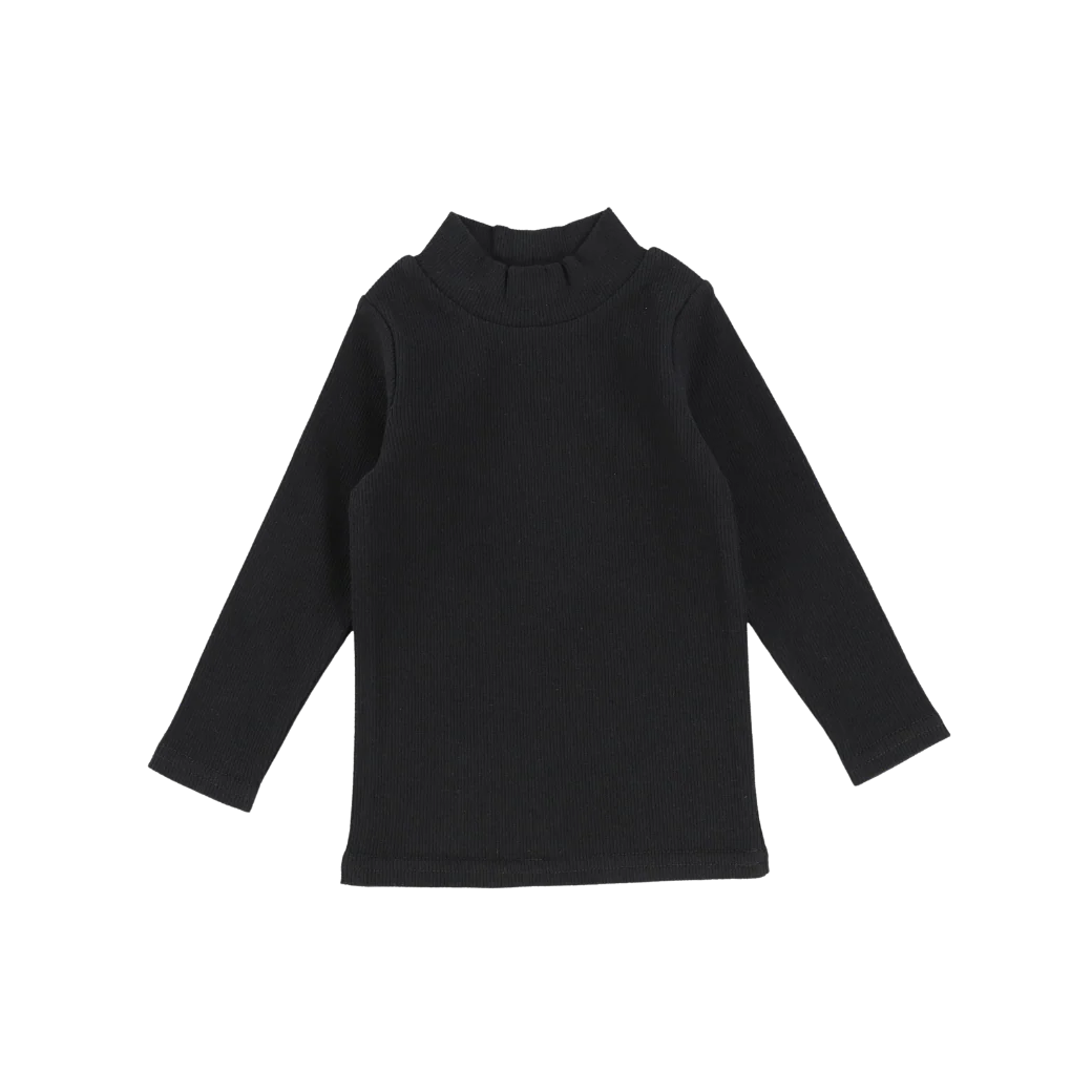 The Lil Legs Ribbed Mock Neck in Black offers a sleek, form-fitting design crafted from soft, ribbed fabric that ensures comfort and durability. Its mock neck provides subtle coverage and a modern silhouette, making it a versatile layering piece for any wardrobe. Ideal for both casual and refined looks, this top combines style with practicality for everyday wear.