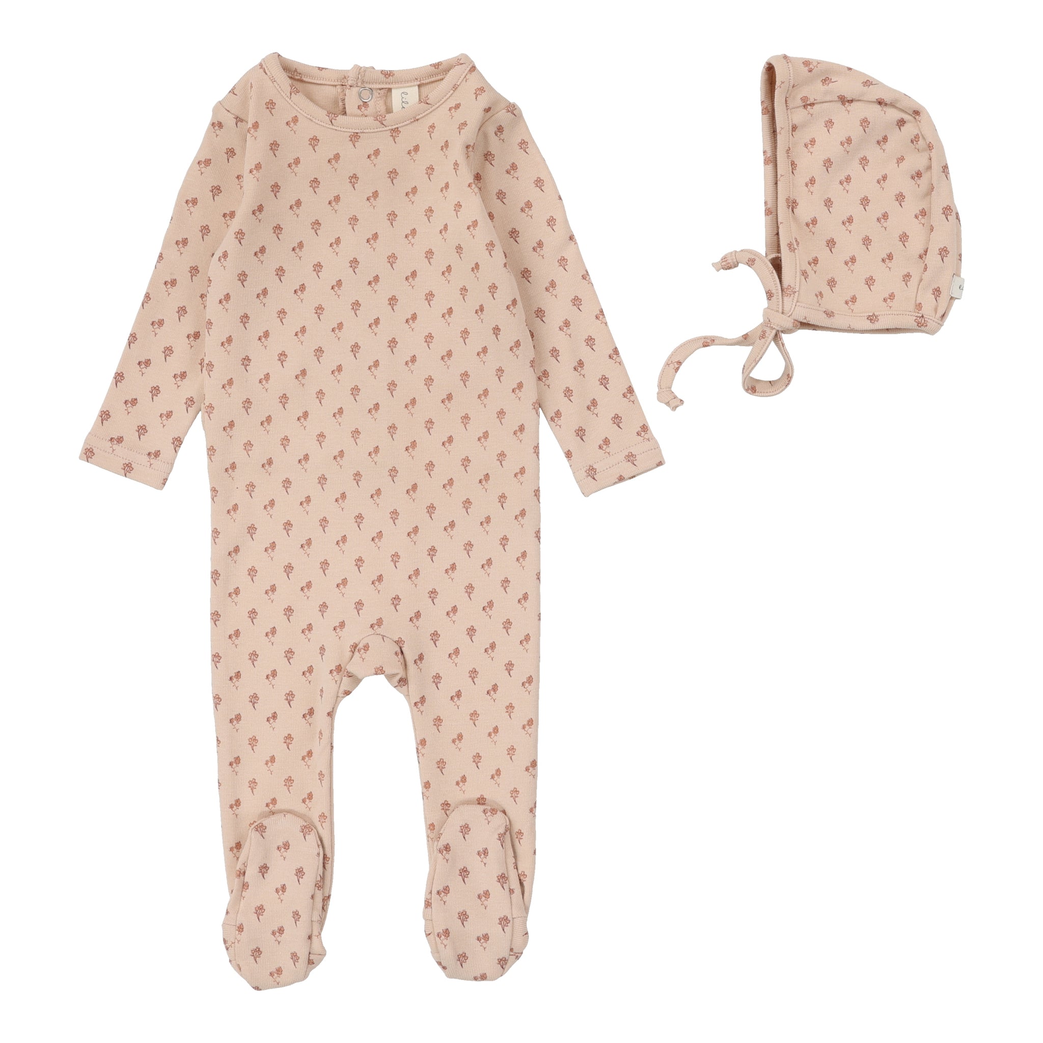 Lilette Ballard Print Footie And Hat - Dusty Pink