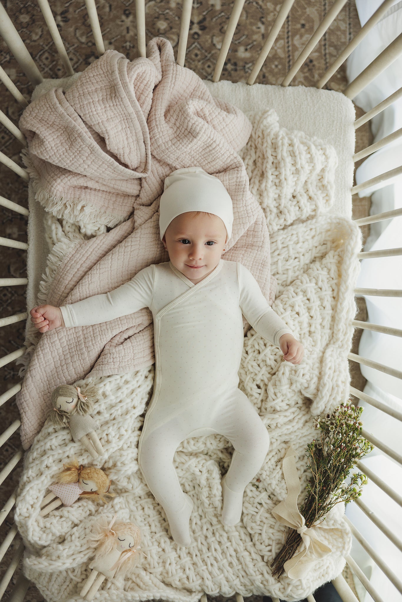 This Lilette Take Me Home set includes a soft cream and pink footie paired with a matching hat, designed to provide newborns with gentle warmth and comfort. Crafted from high-quality materials, it ensures breathability and ease of movement, making it ideal for delicate skin. The coordinated design offers a practical and stylish solution for bringing your baby home, combining functionality with expert attention to detail.