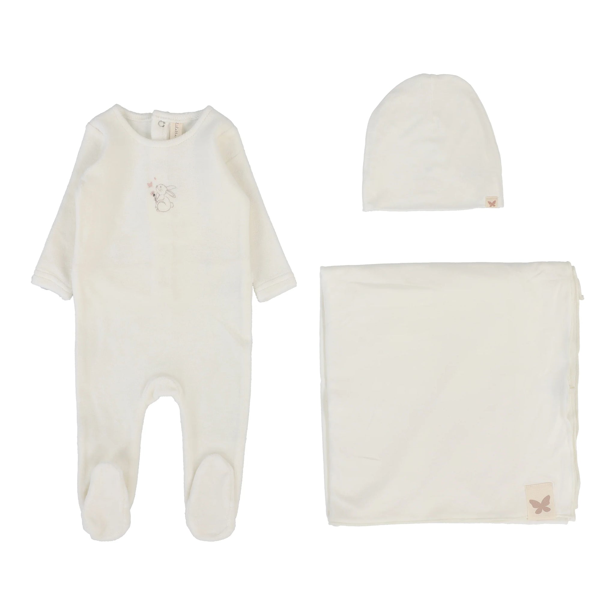 The Lilette Velour Forest Graphic Layette Set in Winter White and Pink offers a soft, cozy fabric perfect for delicate newborn skin. Featuring charming forest-themed graphics, this set combines comfort with subtle style, making it ideal for keeping your baby warm and snug during cooler months. Its expert design ensures ease of dressing and gentle wear, supporting your baby's comfort and your convenience.