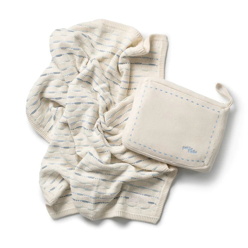 Petite Belle Weave Knit Blanket & Pouch Set - Powder Blue