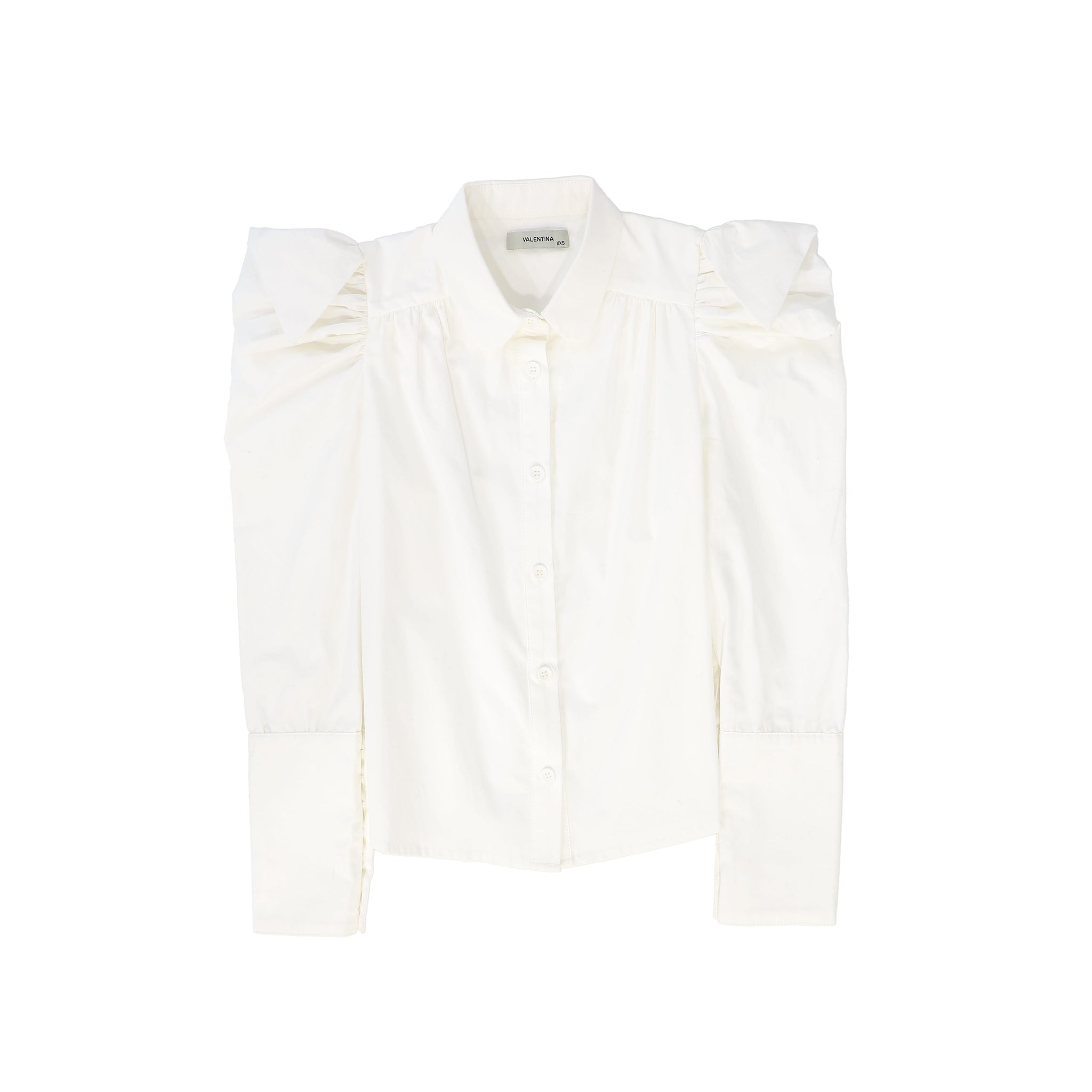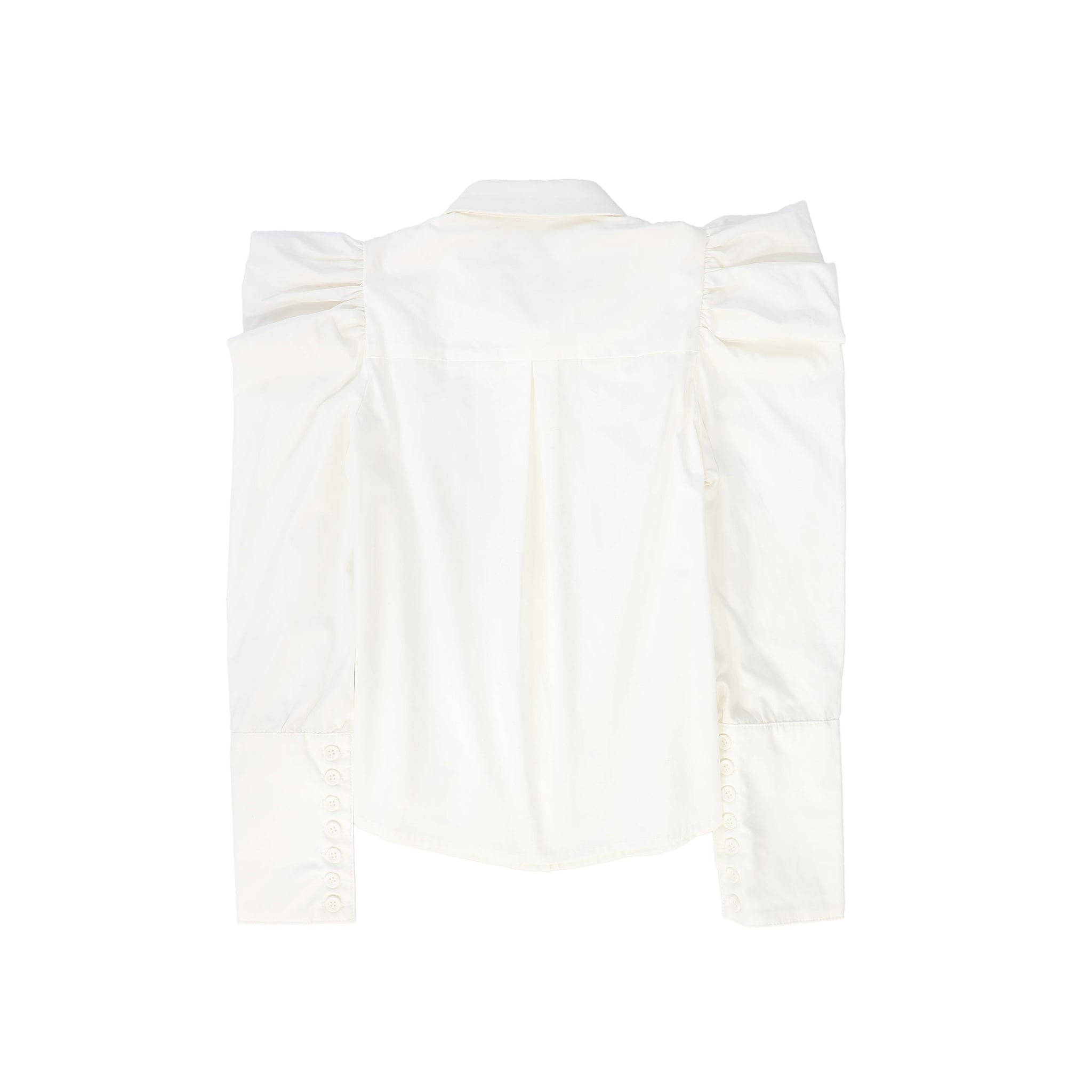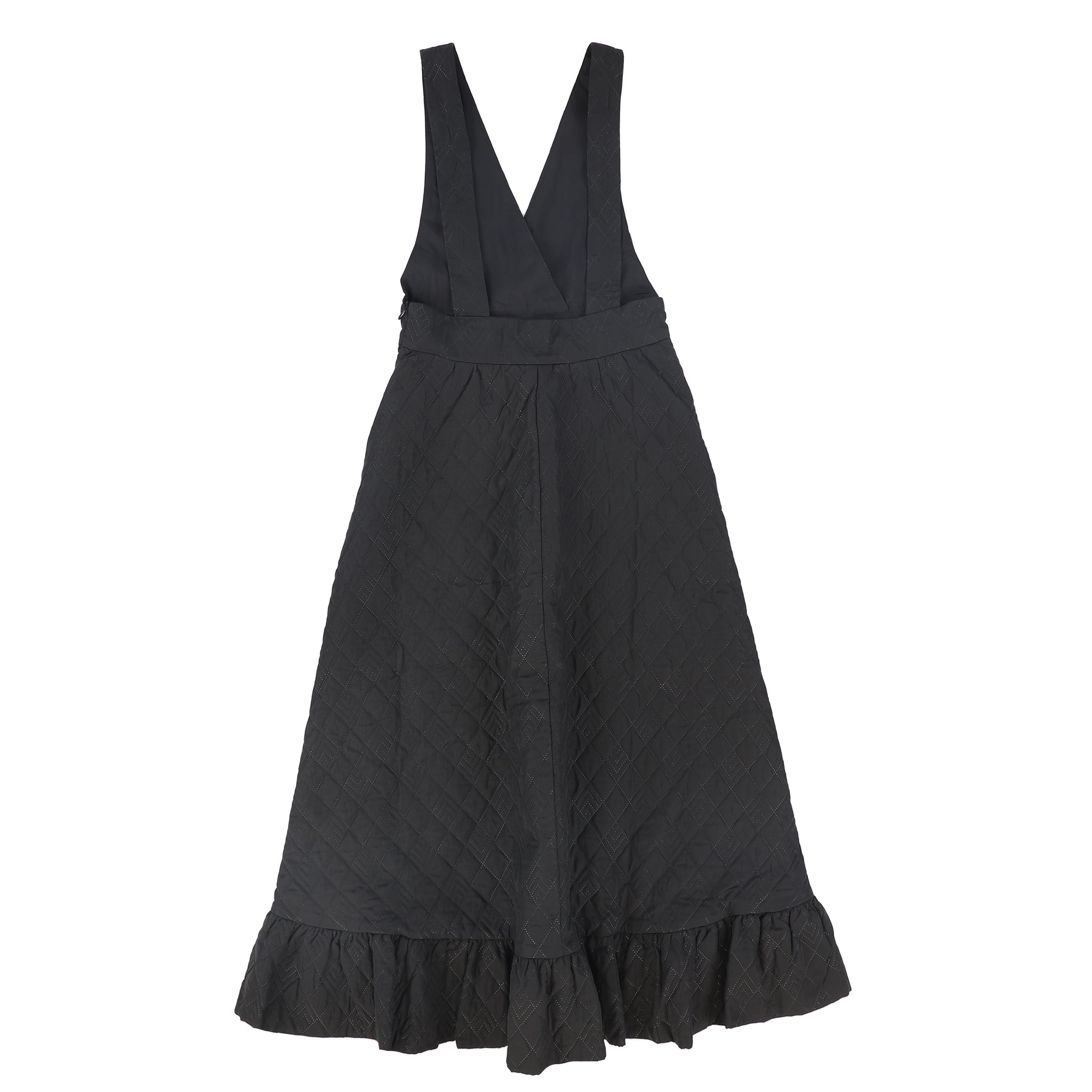 Valentina Quilted Taffeta V-Neck Jumper And Pointed Shoulder Puff Blouse Set - Black