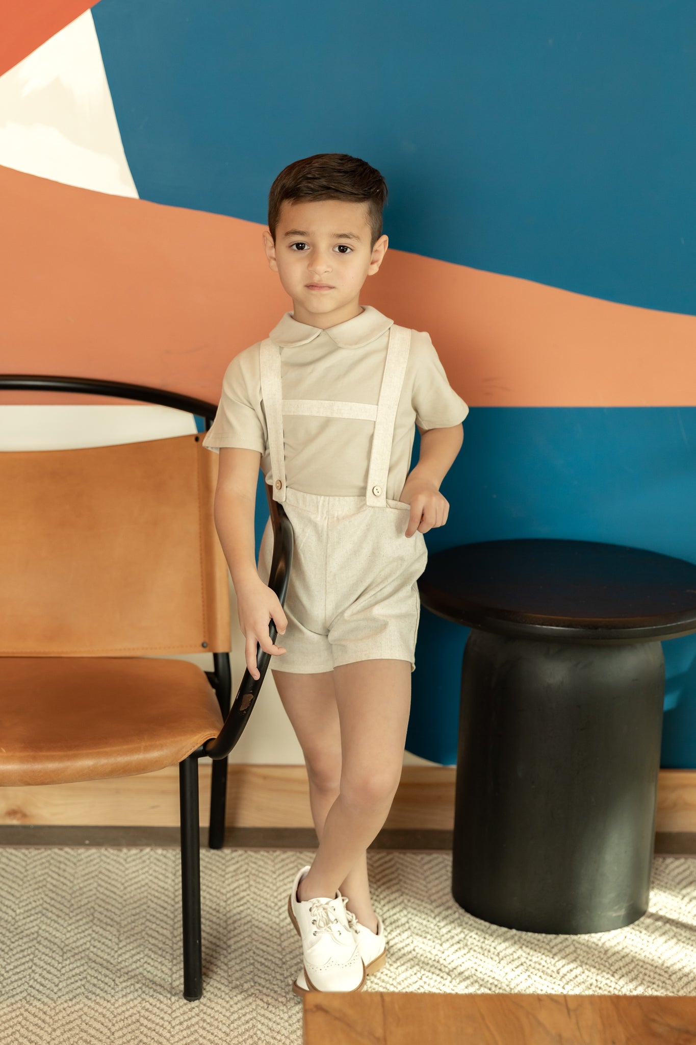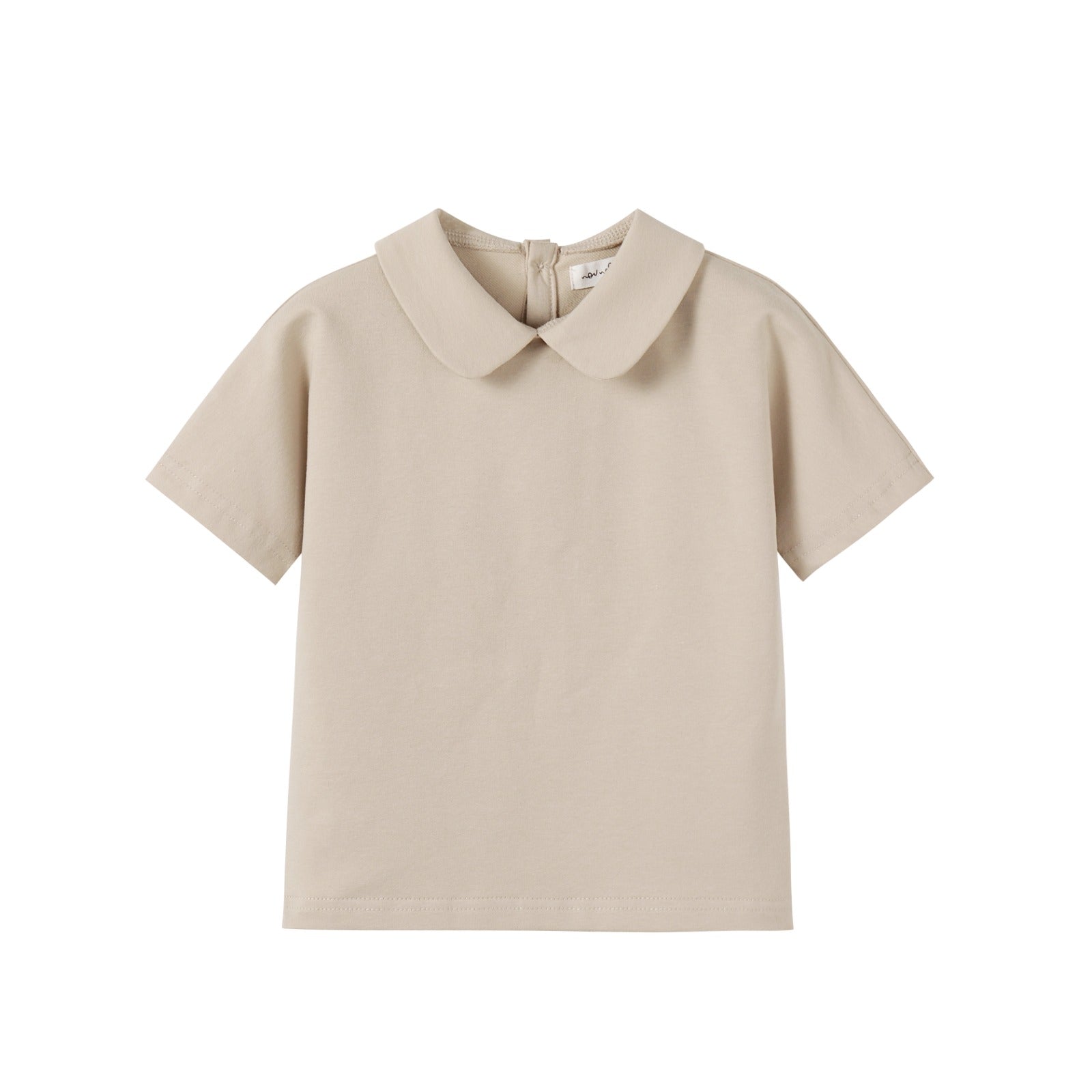 Introducing the Nou Nelle Peter Pan Top in Tan. This versatile top features a timeless Peter Pan collar and is made with high-quality fabric for a comfortable fit. Elevate your wardrobe with this classic piece.