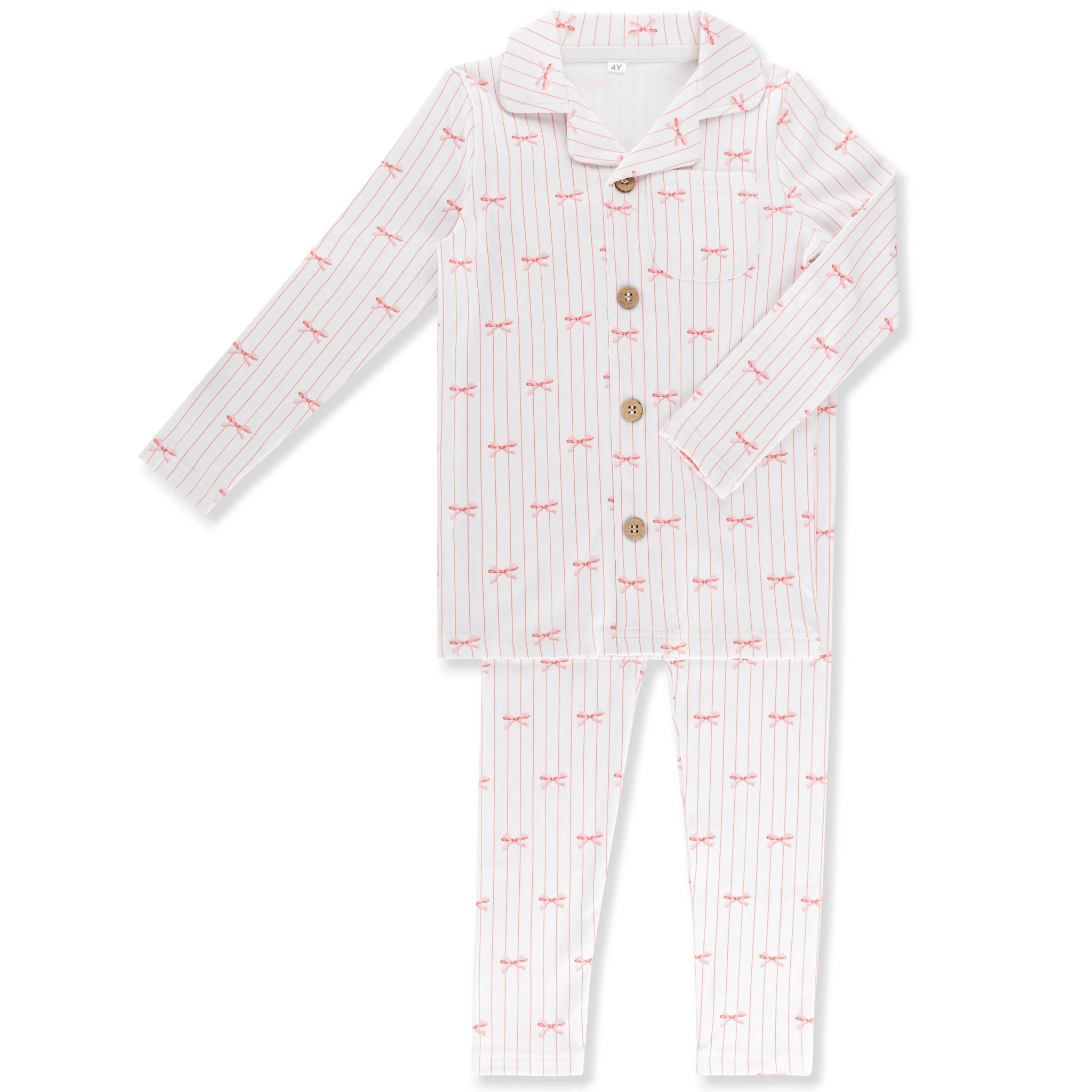 Little Label Pink Bow Print Grandpa Pajama - Pink