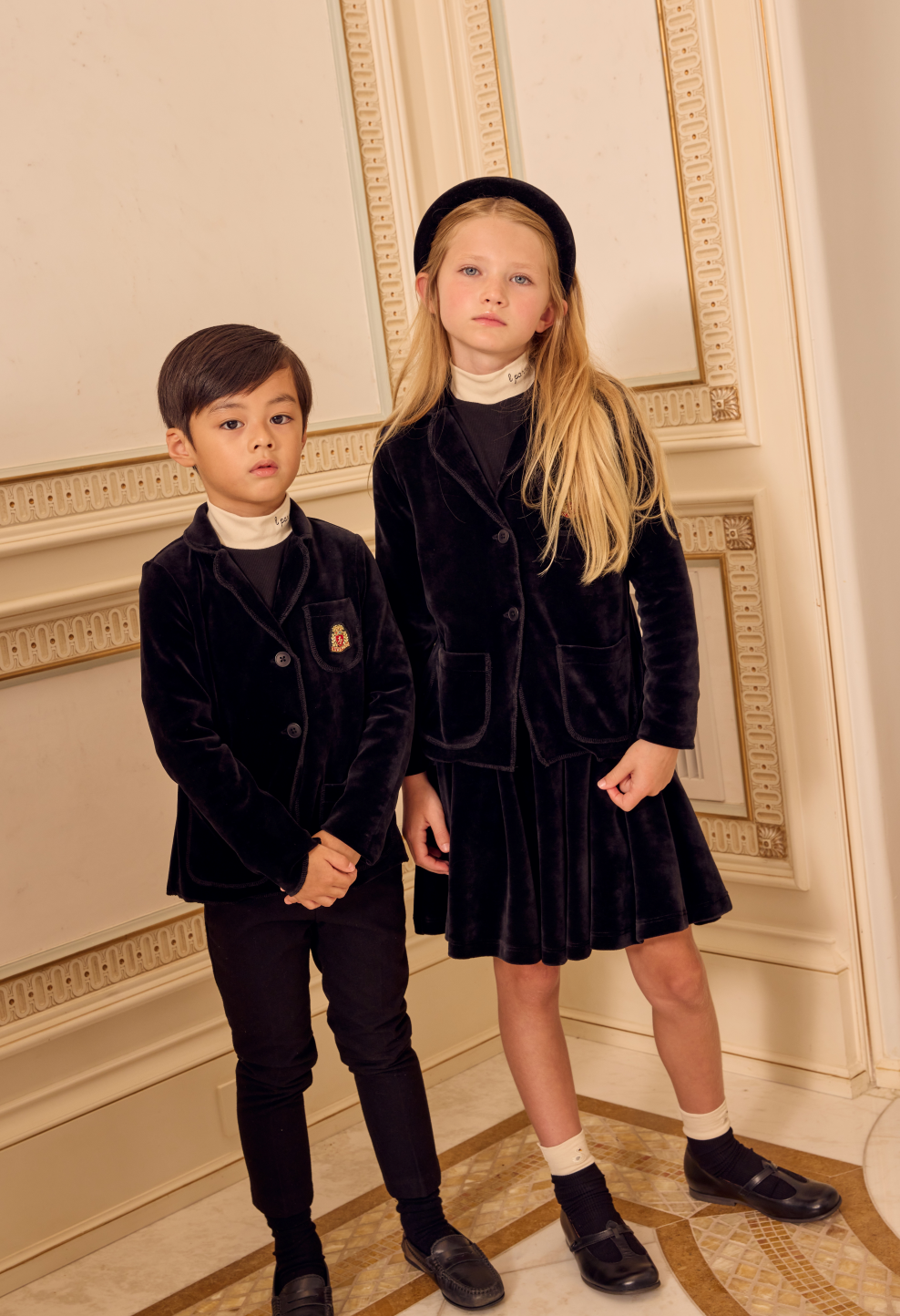 Crafted from soft velour, the Little Parni Velour Pleated Skirt in black offers a refined silhouette with its structured pleats. This skirt combines comfort with elegance, making it an ideal choice for both casual and dressier occasions. Its versatile design ensures easy pairing with various tops, providing a polished look suitable for any expert wardrobe.