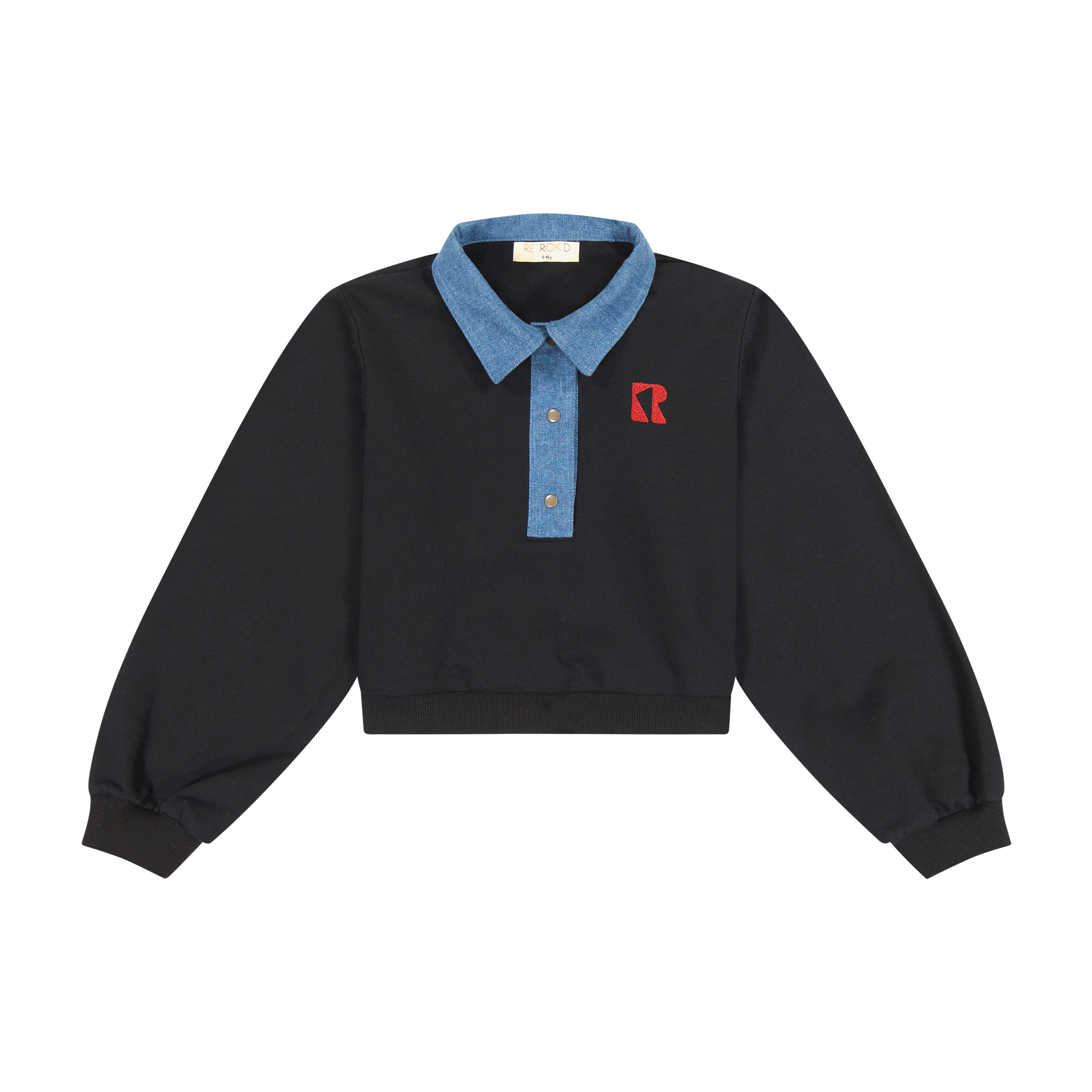 Retro Kid Remy Denim Collar Crop Sweatshirt - Black/Red