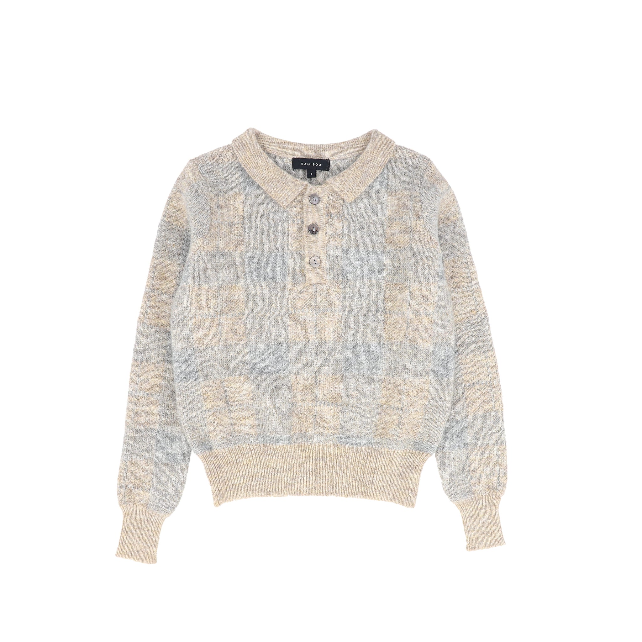 Bamboo Plaid Knit Collar Sweater - Light Grey