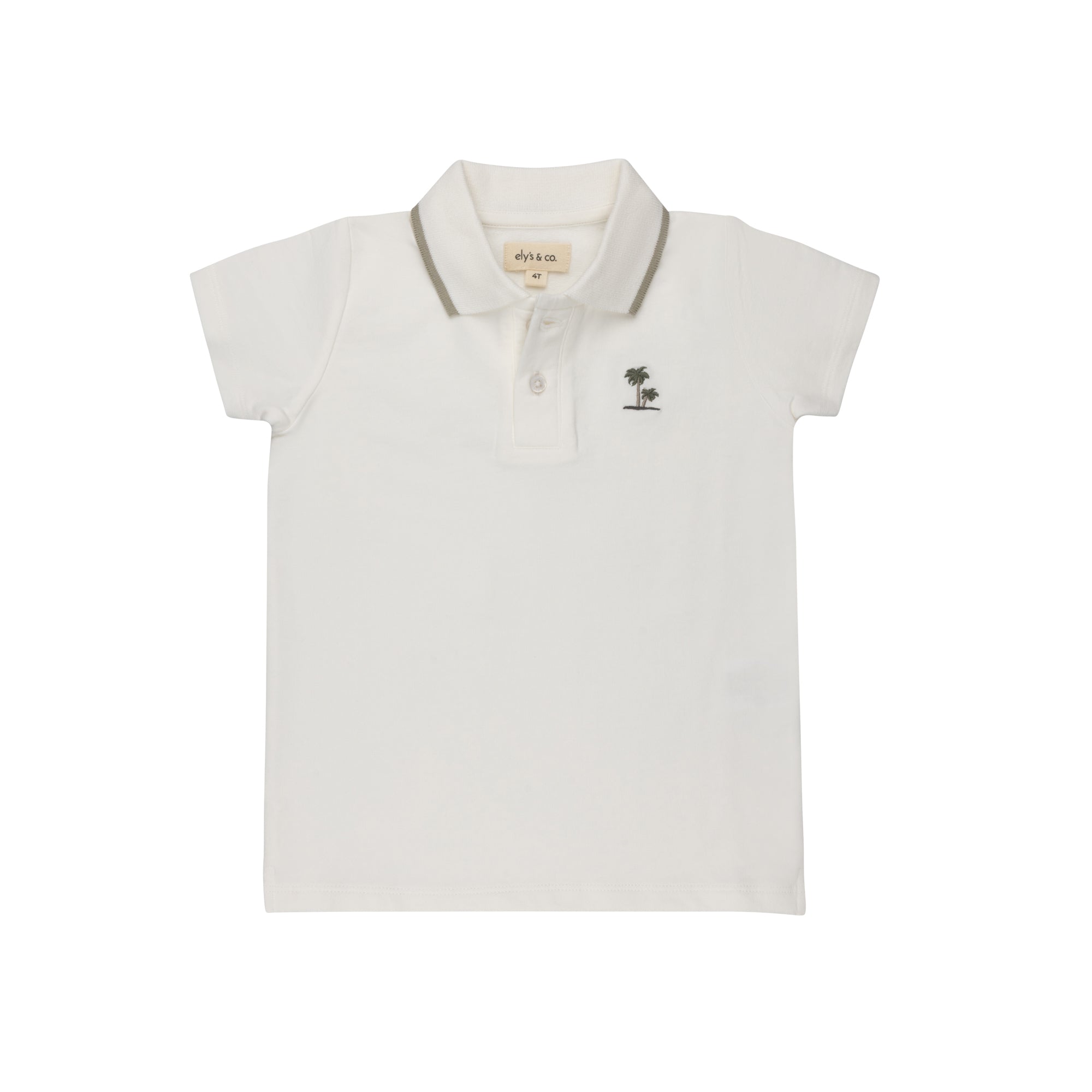 Elevate your little one's wardrobe with this sophisticated polo from Ely's & Co. Crafted in soft ribbed fabric, this ivory piece features delicate palm embroidery that adds a touch of tropical charm. Perfect for special occasions or everyday elegance, the classic polo silhouette ensures comfortable, versatile styling. A timeless essential that pairs effortlessly with any outfit in your child's collection.