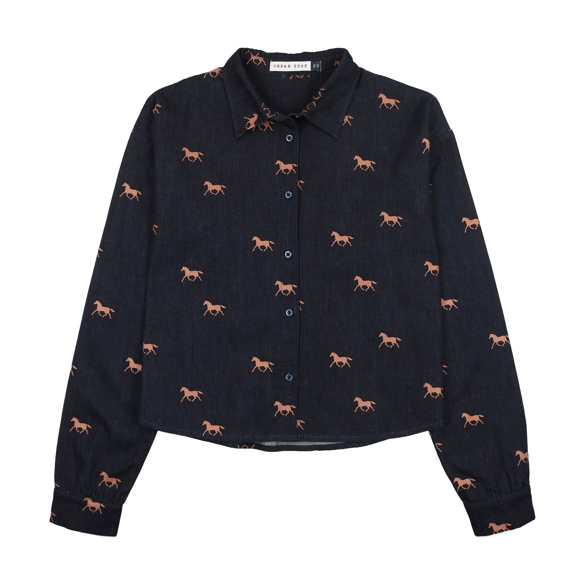 This Urban Edge Denim Horse Print Shirt in blue combines classic denim durability with a distinctive equestrian-inspired print, offering a refined yet casual look. Crafted for comfort and style, it suits those seeking a unique statement piece that pairs effortlessly with various outfits. Ideal for layering or wearing solo, this shirt balances rugged texture with artistic detail, making it a versatile addition to any wardrobe.